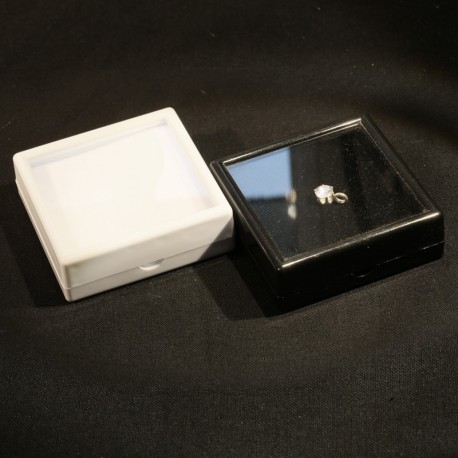 Boites de gemmologie 50x50x17 blanche ou noire protection pour pierre taillée dessus en verre